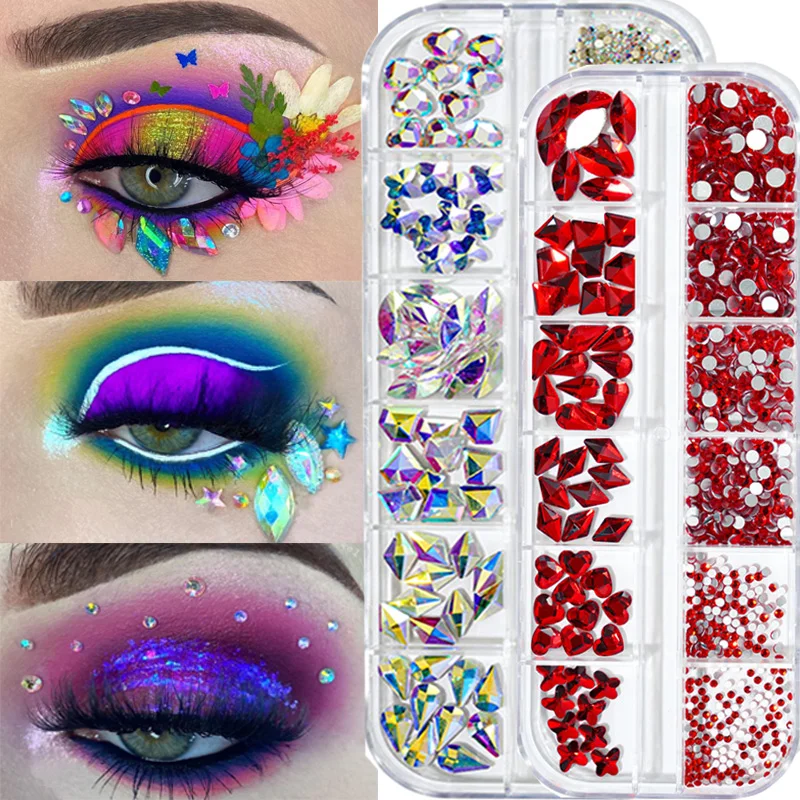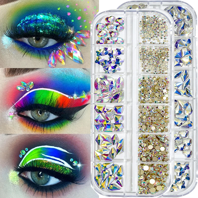 3D тени для век Стразы красочные кристаллы AB нестандартные драгоценные камни смешанного размера с плоской задней стороной украшения для ногтей ювелирные изделия сделай сам макияж для глаз