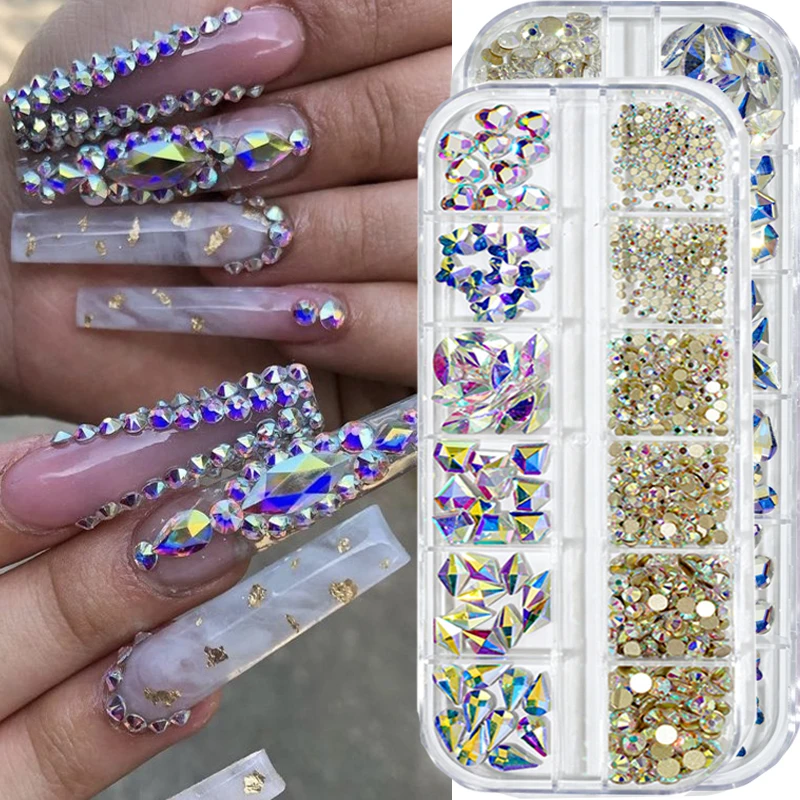 12 сетоккоробка красочные хрустальные стразы для дизайна ногтей Акр...