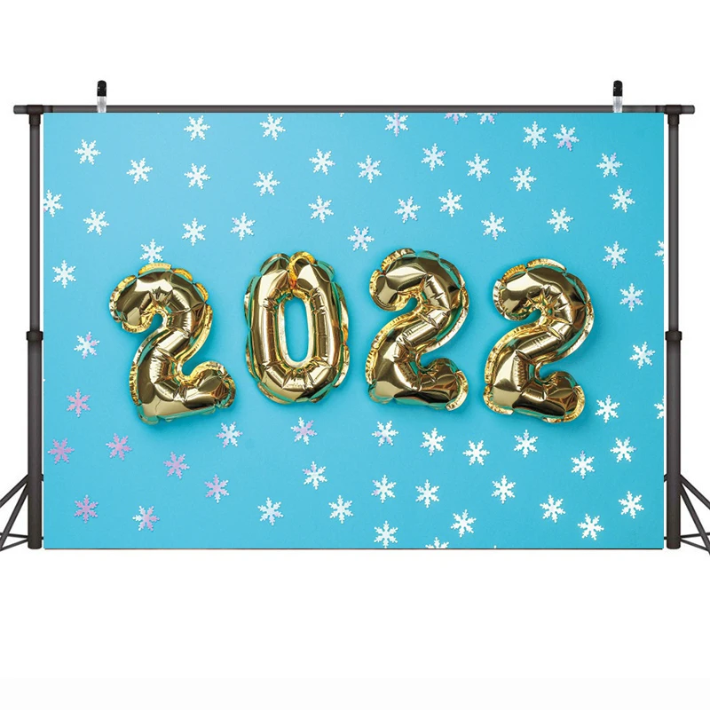С Новым Годом 2022 Рождество фон для фотосъемки Снежинка золотые воздушные шары вечеринка украшение для дома фон для фотосъемки баннер для студии