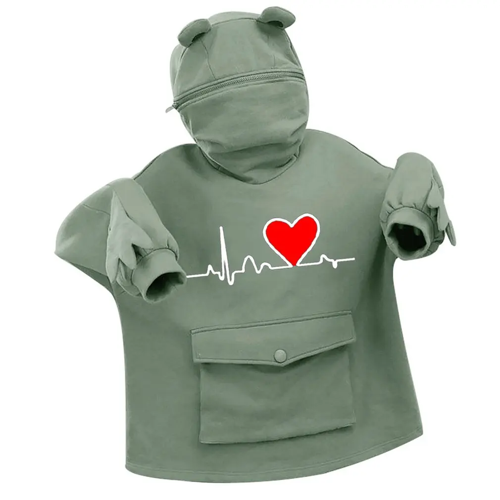 3. Свитер с длинными рукавами: Эта толстовка с рисунком лягушки с длинными рукавами защитит вас от холода, ветра и тепла осенью и зимой.