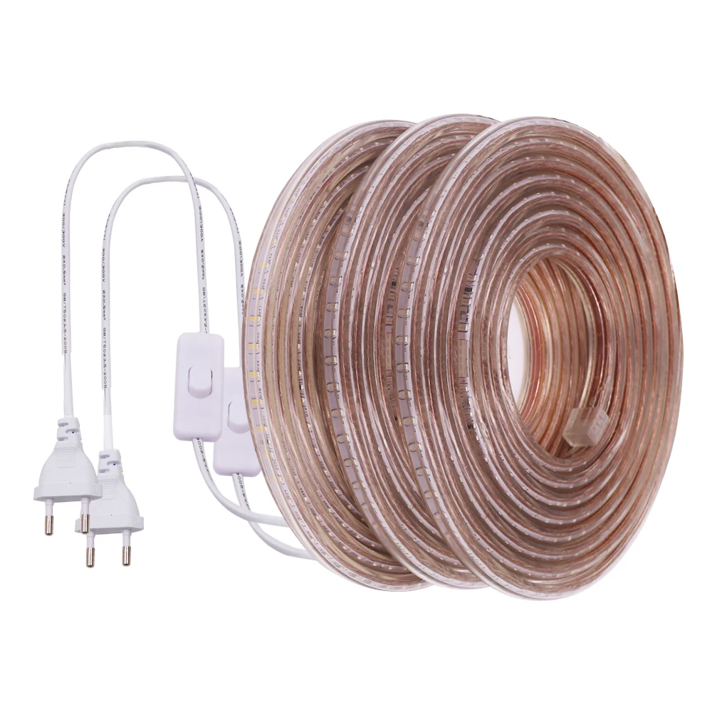 Светодиодные ленты ЕС 220 240V Водонепроницаемый IP67 открытый веревка белыйтеплый белыйсиний светодиод SMD 3014 120 светодиодовm светодиодный светильник полосы + ЕС переключение вилок