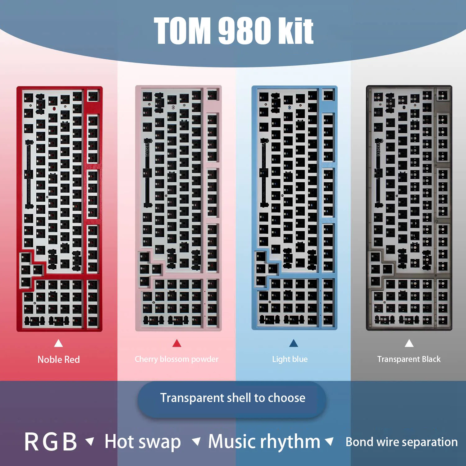Этот товар только в комплекте, не включая переключатели и колпачки!ПараметрыОсновная схема управления: VS11K56AБеспроводной канал RFIC: BK3632Режим Bluetooth: Совместимость с Bluetooth 5,0/4,0/3,0, поддержка обмена между 3 устройствамиРежим 2,4 ГГц: 1000 МГц, добавлен 2,4G автоматический скачок частоты для уменьшения функции помехРежим USB: совместим с USB 3,1/3,0/2,0, скорость отклика 1 мсРежим освещения: с южной стороны, под свечением, все клавиши RGB ligh, несколько режимов освещения, поддержка музыкального ритмаГорячая замена: командный волк Горячая замена розетка, может быть совместима с главным образом MX Стандартный 3/5 контакты переключатели(Нет программного обеспечения для горячей замены и пайки платы!)Батарея: Высокопроизводительные литиевые батареи, 1850 мАчПрограммное обеспечение: индивидуальное программное обеспечение с сильной функциейФункция макросъемки: Поддержка настраиваемой макросъемки, изменение карты по индивидуальному заказуФорма пластины: материал EVAЧехол: цветной прозрачный чехол из АБС-пластикаПосылка включает в себя: HolyTom980 комплект * 1, съемник keycap * 1, стабилизаторы (2u * 5 + 6.25u * 5), кабель Type-c для USB-A * 1Метод сопряжения с тремя режимами 980 2,4GСначала установите трехрежимный переключатель на G, третий индикатор на клавиатуре мигает зеленым, затем нажмите FN + 4 и нажмите и удерживайте в течение 3-5 секунд, подождите, пока зеленый светильник начнет мигать быстро, а затем 2,4G вставьте приемник в компьютер для сопряжения (Не забудьте включить режим сопряжения комплекта, прежде чем вставить приемник 2,4G в компьютер). В это время, пожалуйста, поместите пространство клавиатуры как можно ближе к ресиверу, чем ближе, тем лучше! Если сопряжение не сработает, повторите сопряжение Согласно вышеуказанному методу!Трехрежимный 980 метод сопряжения Bluetooth: сначала переверните трехрежимный переключатель в B, третий индикатор клавиатуры мигает синим, FN plus 1/2/3 соответствует сочетанию трех различных устройств, и первое устройство, например, FN plus 1, длительное нажатие в течение 3-5 секунд, Подождите, пока светильник индикатора начнет мигать быстро, а затем найдите устройство Bluetooth на телефоне или компьютере или планшете и нажмите, чтобы соединить!