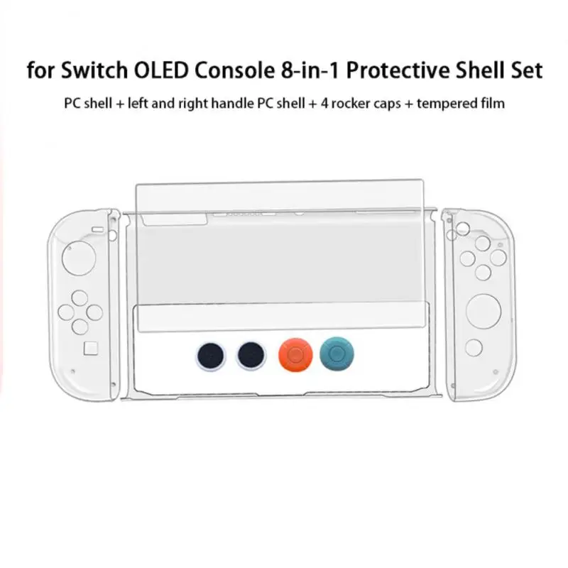 8 в 1 Набор кристальных чехлов для переключателя OLED хоста 9H закаленная пленка рукоятки для большого пальца колпачки для Joycon ДЛЯ NS защитный чехол
