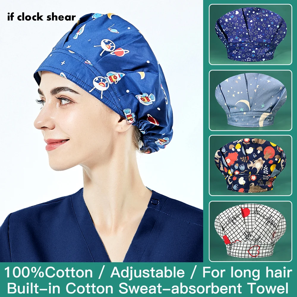 Эластичная хлопковая шапка с принтом для медсестер, шапка для скраб...