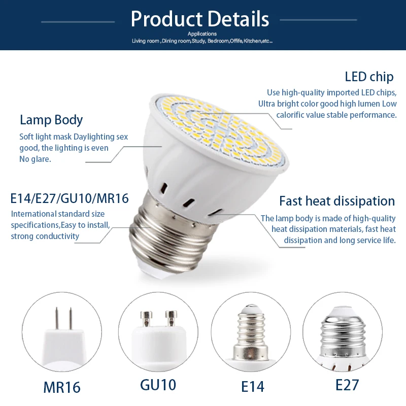 Светодиодные точесветильник почки E27 E14 MR16 GU10 B22 220 В, 4 шт...