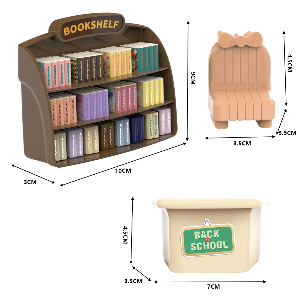 Упаковка: 1 * книжная полка, 1 * стол, 1 * стул, 16 * книга, Бесплатная наклейка