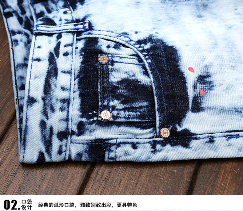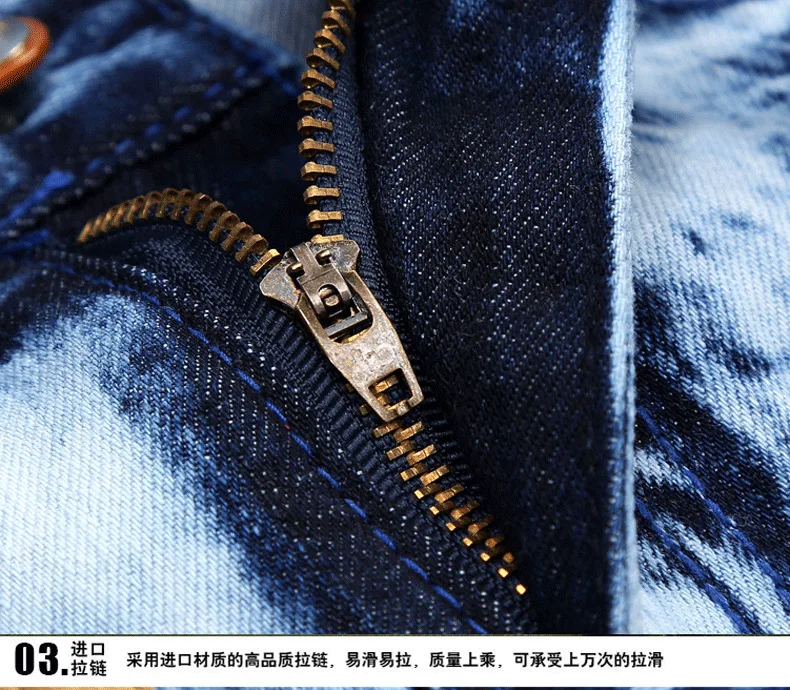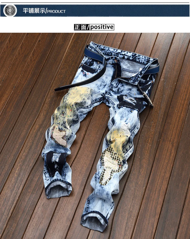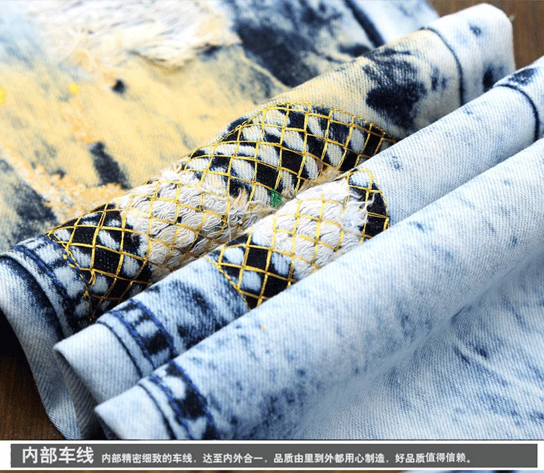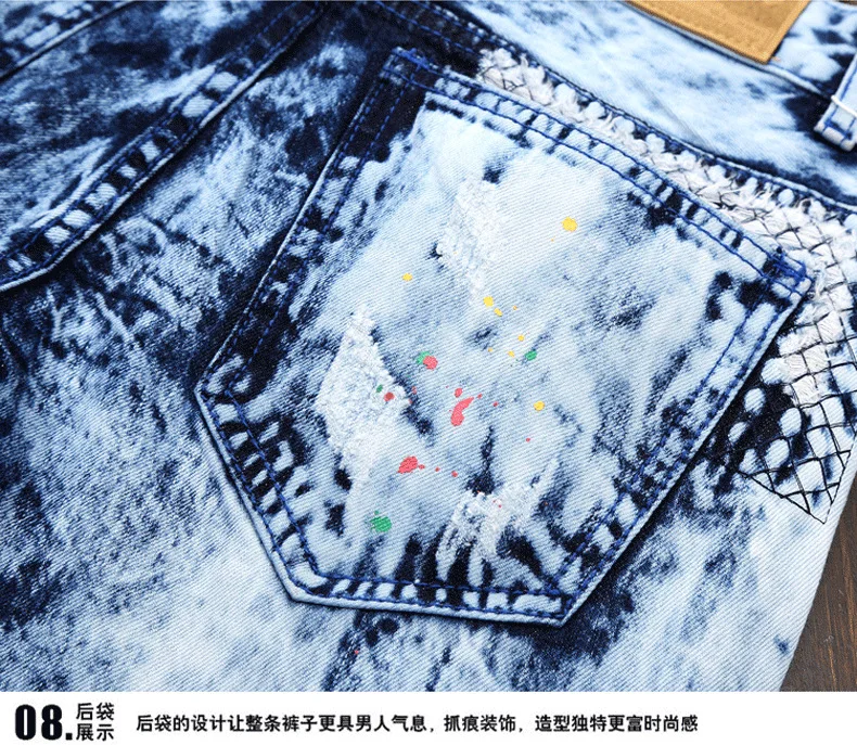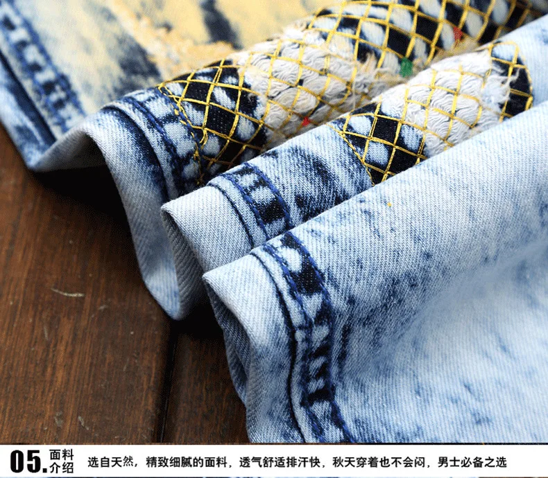 Джинсы мужские прямые в стиле хип-хоп, Модные зауженные брюки с вырезами, рваные джинсовые штаны в стиле пэчворк, светло-голубые