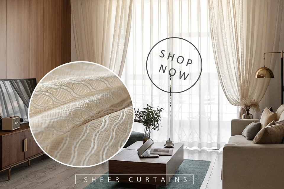 Льняные текстурированные прозрачные шторы LISM, оконные шторы в пол...