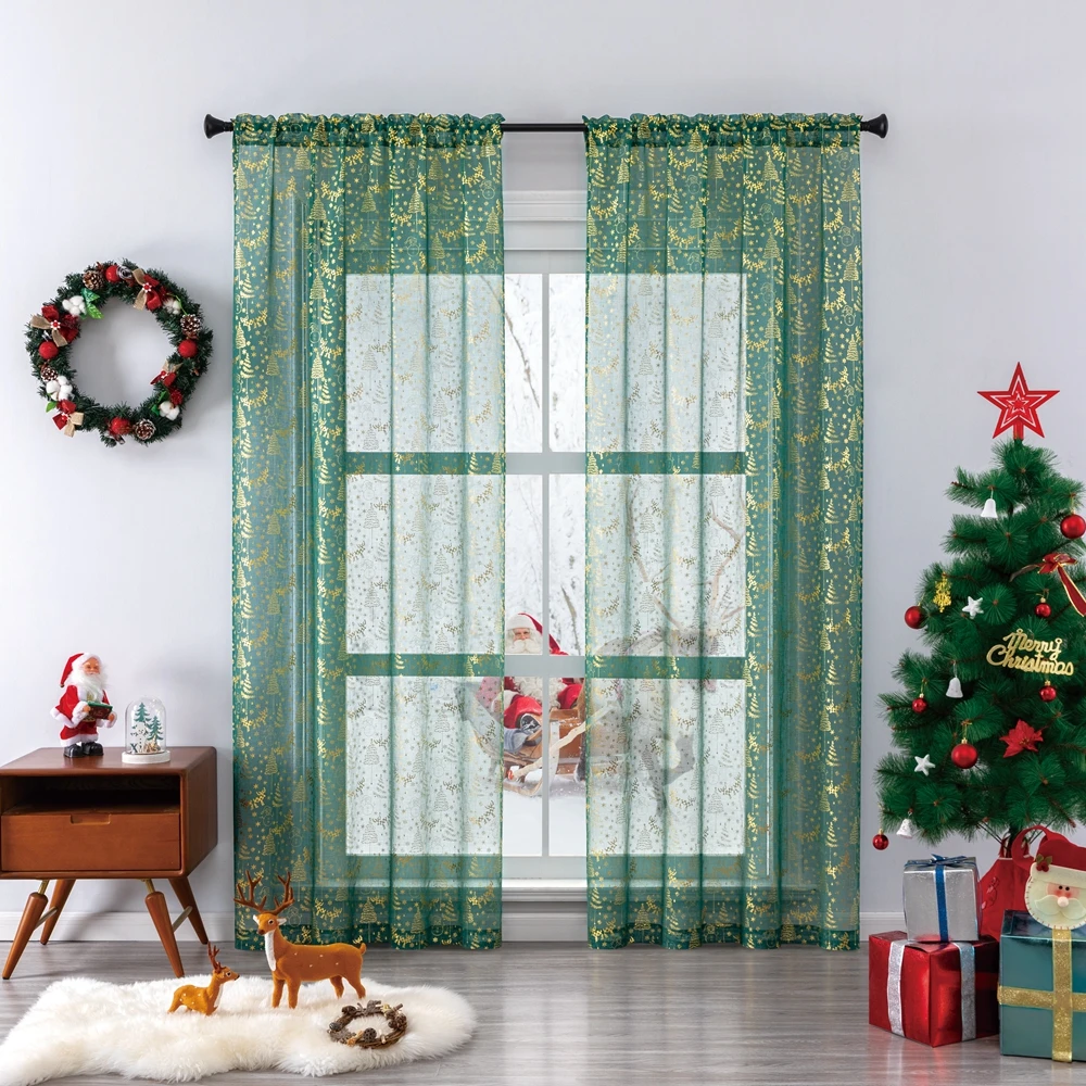 Рождественские зеленые тюлевые шторы TPS для гостиной, спальни, кух...