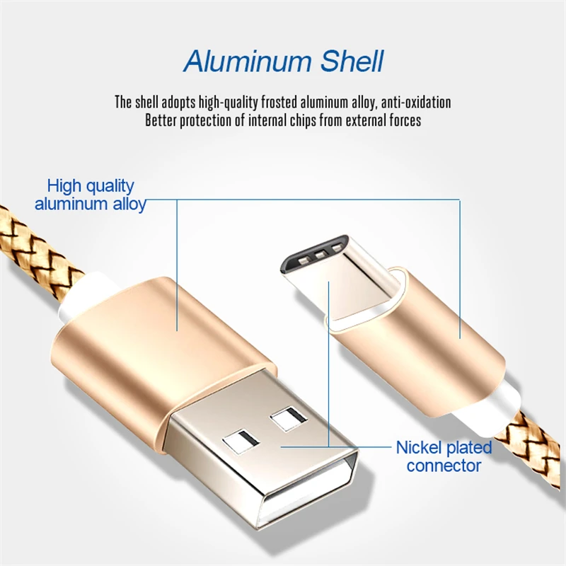 Кабель USB Type C для быстрой зарядки и передачи данных, нейлоновый...