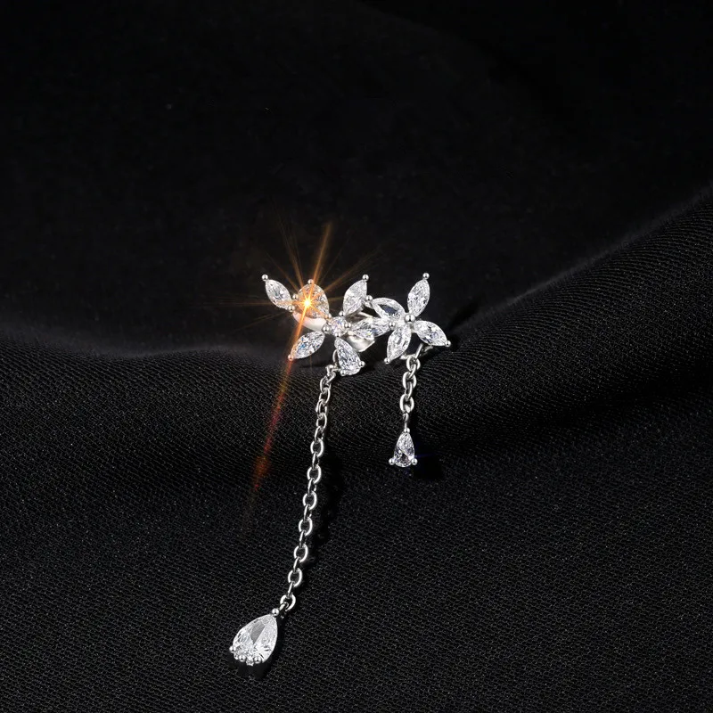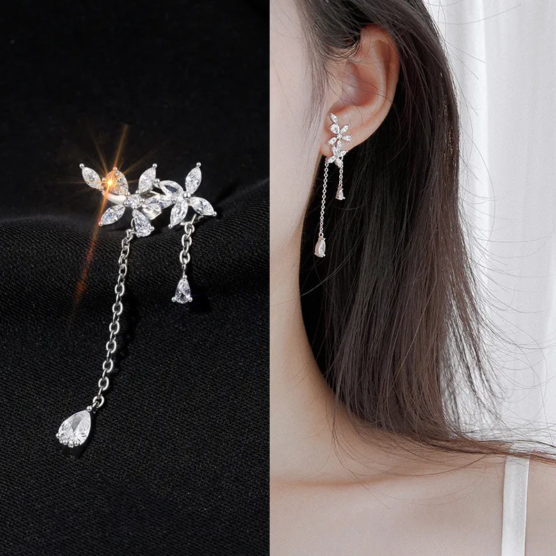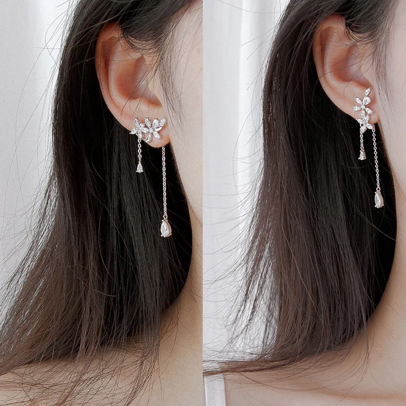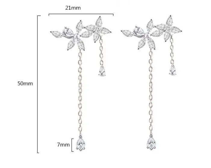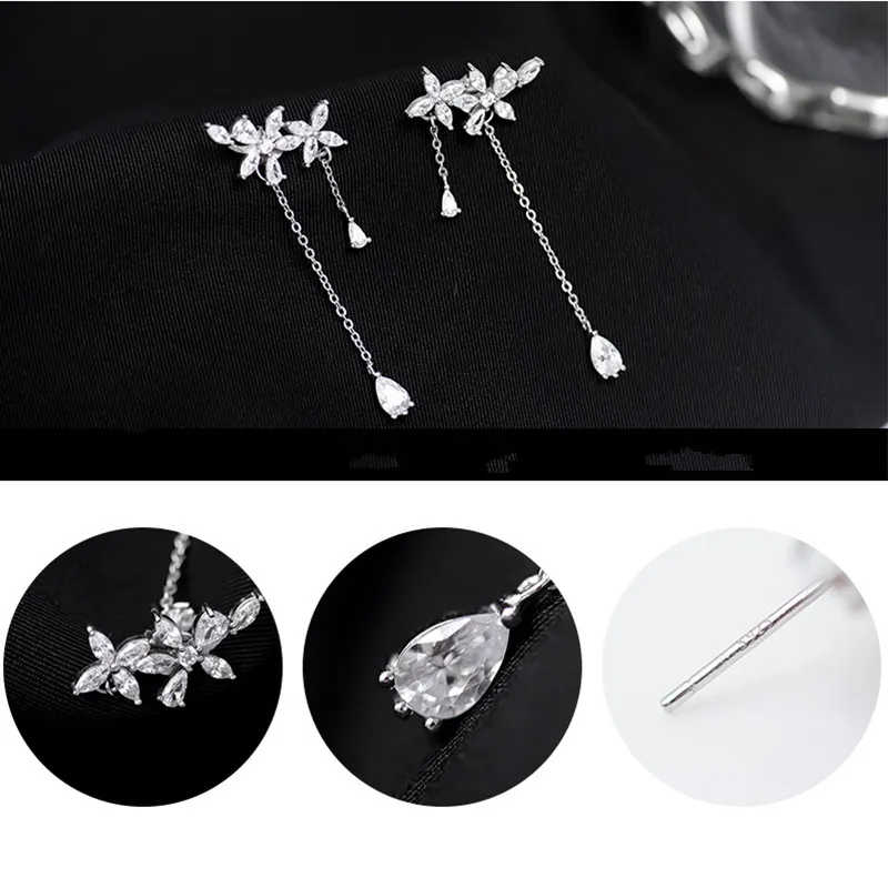 Модные длинные серьги-подвески серебряного цвета с цирконом и цветком для женщин и девушек элегантные модные ювелирные изделия для свадебной вечеринки 2022 eh1777