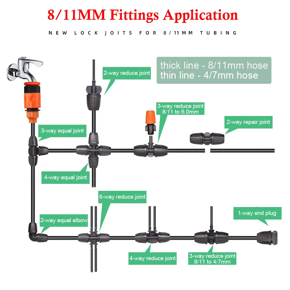 -Применяется автоматический ирригационный набор для сельского хозяйства, лужайки, сада, патио, теплицы, бассейна распыленного охлаждения орошения. Аксессуары для капельного орошения экономят время и воду.