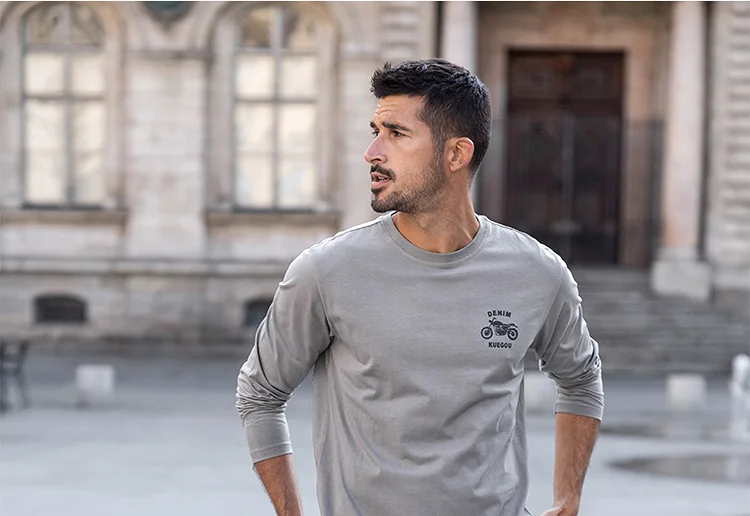 Футболка мужская с длинным рукавом KUEGOU, базовая тенниска из 100%...