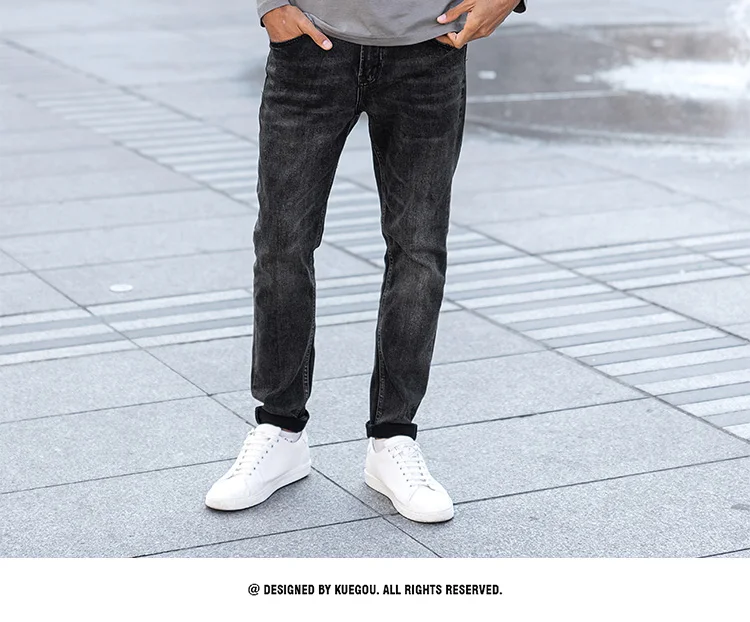 KUEGOU хлопчатобумажная одежда мужские рубашки стильное джинсовое п...
