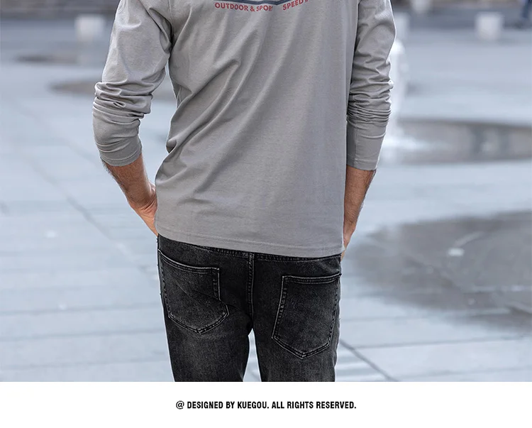 Мужская футболка с длинным рукавом KUEGOU, черная Винтажная футболка с длинным рукавом, модель 100%, 2022 хлопок, осень 60039