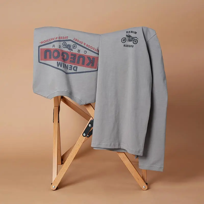 KUEGOU 2022, Весенняя серая футболка из 100% хлопка с принтом, мужс...