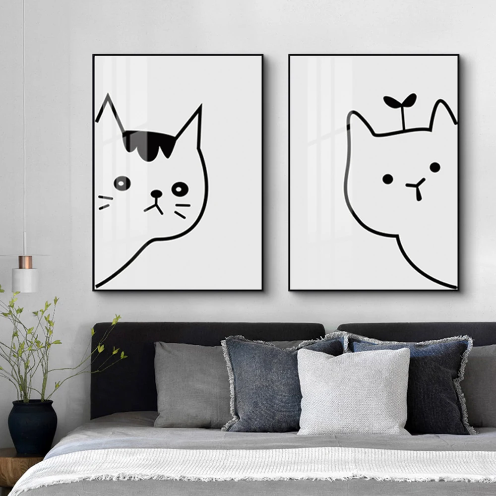Украшение для комнаты девочки с изображением милой кошки на холсте, в скандинавском стиле, декоративные обои с животными для гостиной и спальни