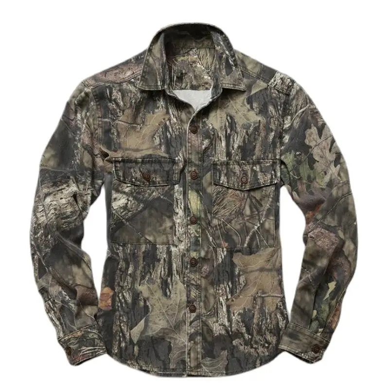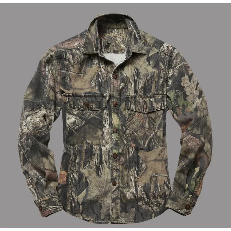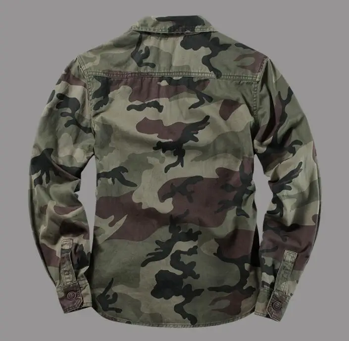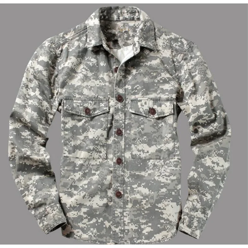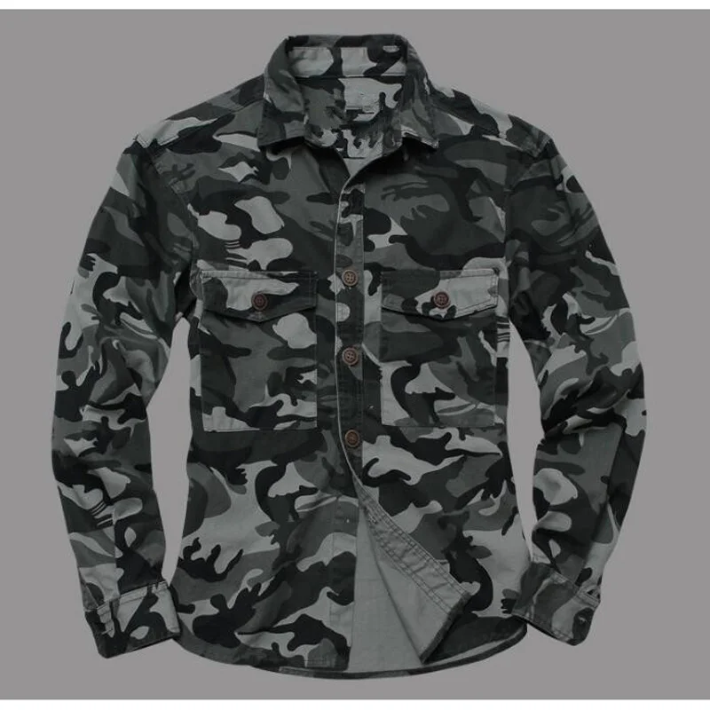 Мужская камуфляжная рубашка с длинным рукавом, в стиле милитари