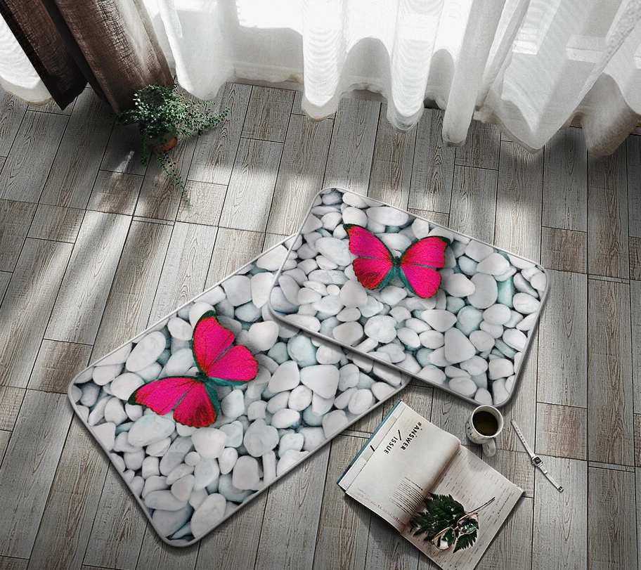 Бабочки камень 3D печать Входные Коврики мультфильм области ковер дропшиппинг 40x60 см фланелевый коврик коврики для ванной комнаты и кухни на заказ ковер