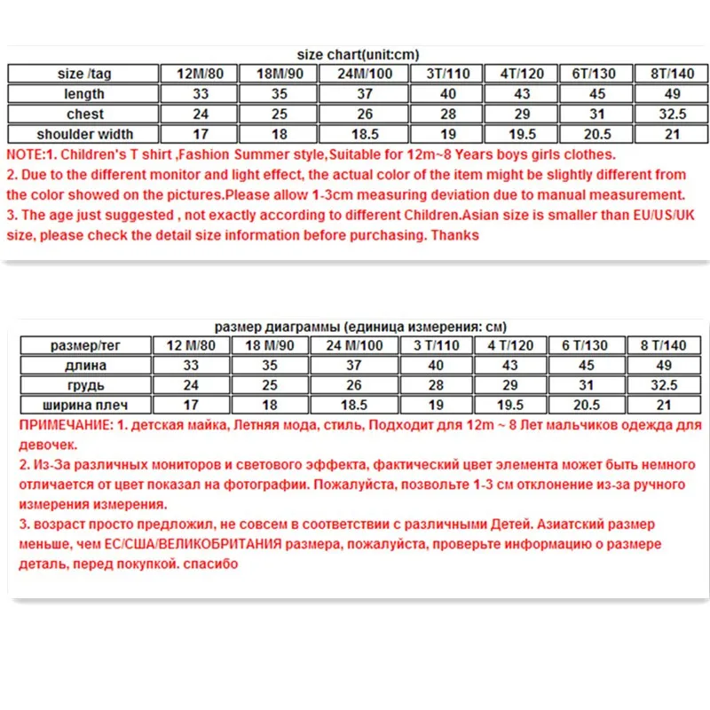 Примечание: 1. Детская футболка; Модный летний стиль; Одежда для мальчиков и девочек 12 мес.-8 лет.