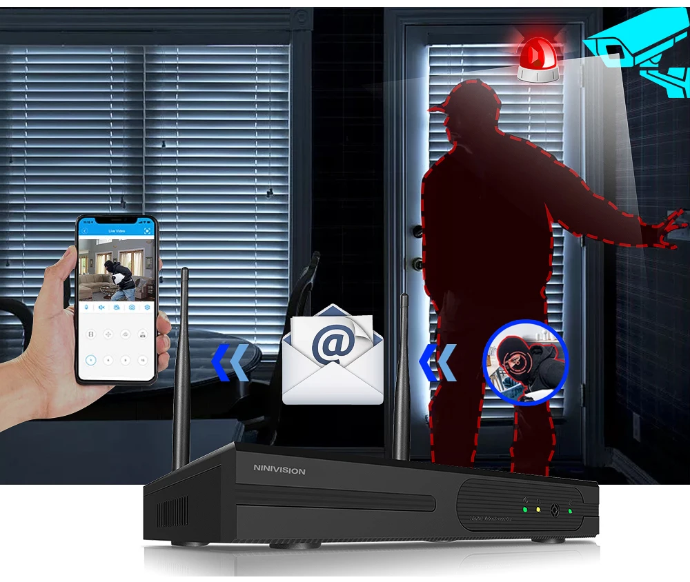 Беспроводные соединения между камерами и NVR, беспроводная передача до 50 метров (без препятствий)