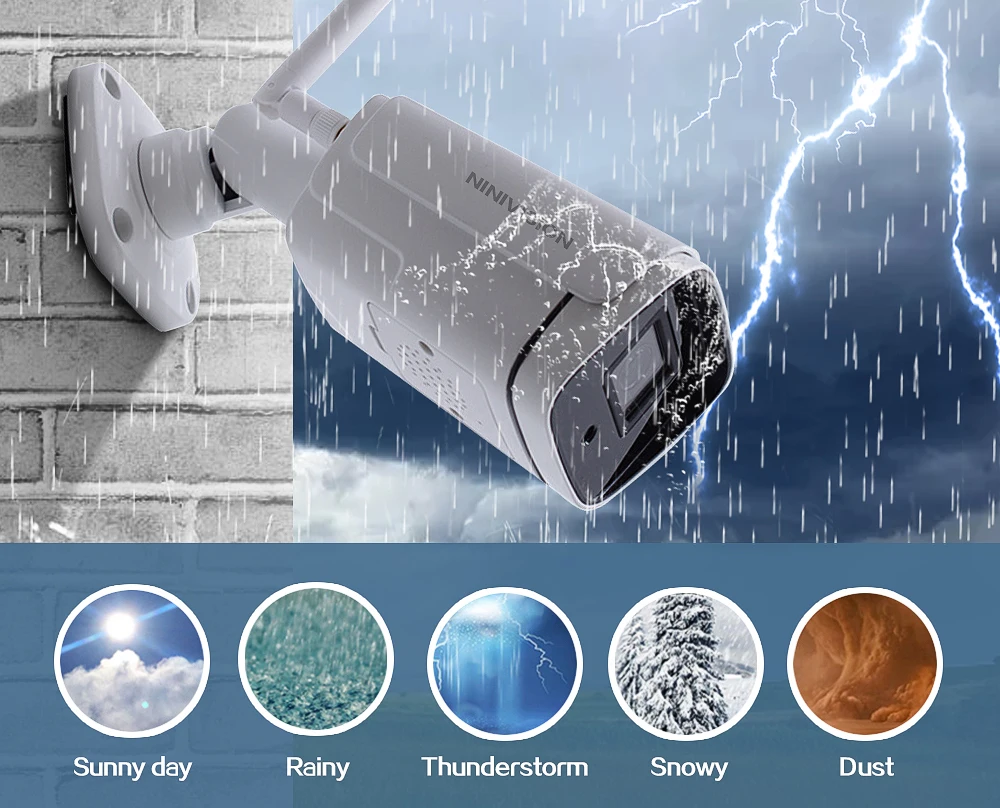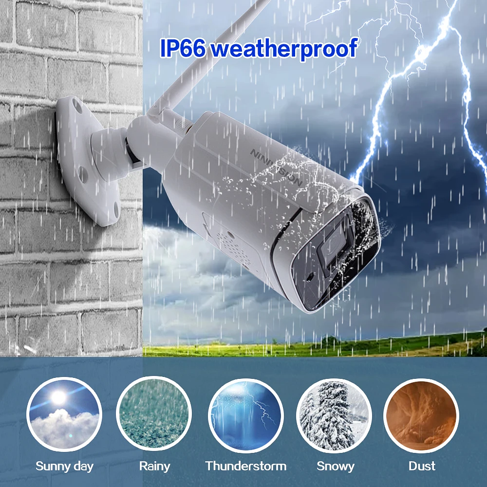 Используйте их в качестве наружных камер или внутренних камер, так как они построены жестко, чтобы выдерживать любую погоду: дождь, снег, пыль и жаркие дни. С защитой от атмосферных воздействий IP66 и кабелями, проходящими через подставку для дополнительной защиты, гарантируем, что вы сможете ответить на их производительность, день в день. Наша камера имеет сверхпрочный металлический корпус, профессиональный IP66, устойчивый к атмосферным воздействиям, обеспечивая стабильную производительность как внутри, так и снаружи.