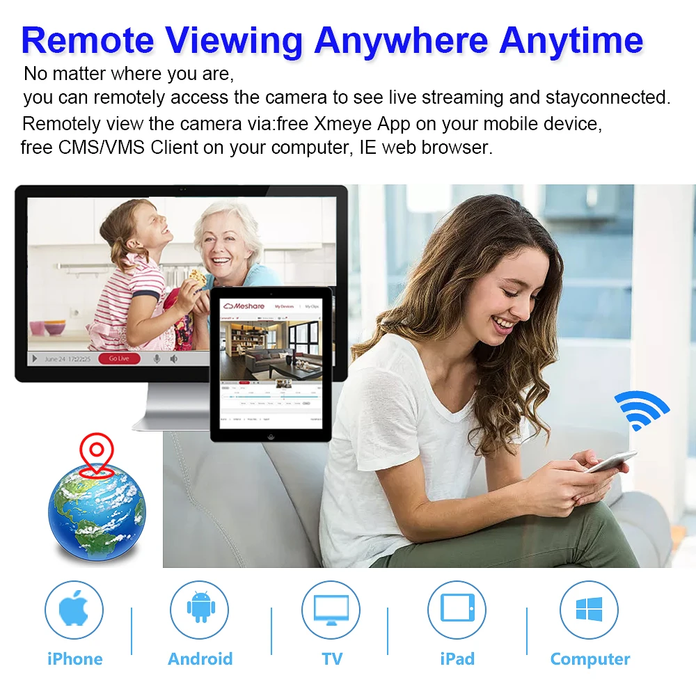 Простая настройка, всего 4 шага для просмотра мобильный телефон, просмотра видео в режиме реального времени из любого места и в любое время с помощью смартфона, стола или ПК с передовой технологией P2P, вы можете получить удаленный доступ к вашей системе за считанные минуты или меньше, нет необходимости в переадресации, удаленный доступ никогда не был таким простым!
