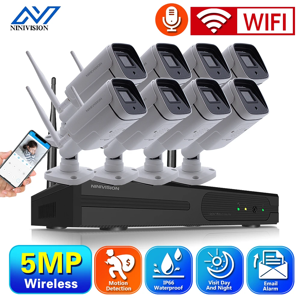 NINIVISION 8-канальный сетевой видеорегистратор Wifi NVR Kit 5MP открытый Водонепроницаемый IP безопасность Камера Wi-Fi Беспроводной комплект 8CH CCTV видео Камеры Скрытого видеонаблюдения Камера Системы набор