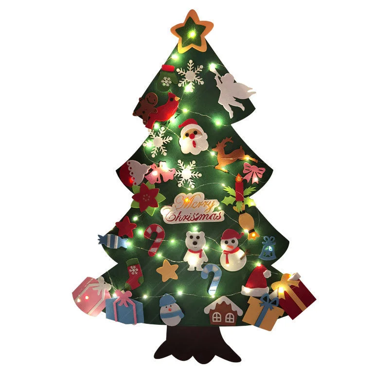 Детская войлочная Рождественская елка с 32 шт. в комплекте, настенные подвесные съемные украшения, рождественские подарки, детские рождественские украшения для дома