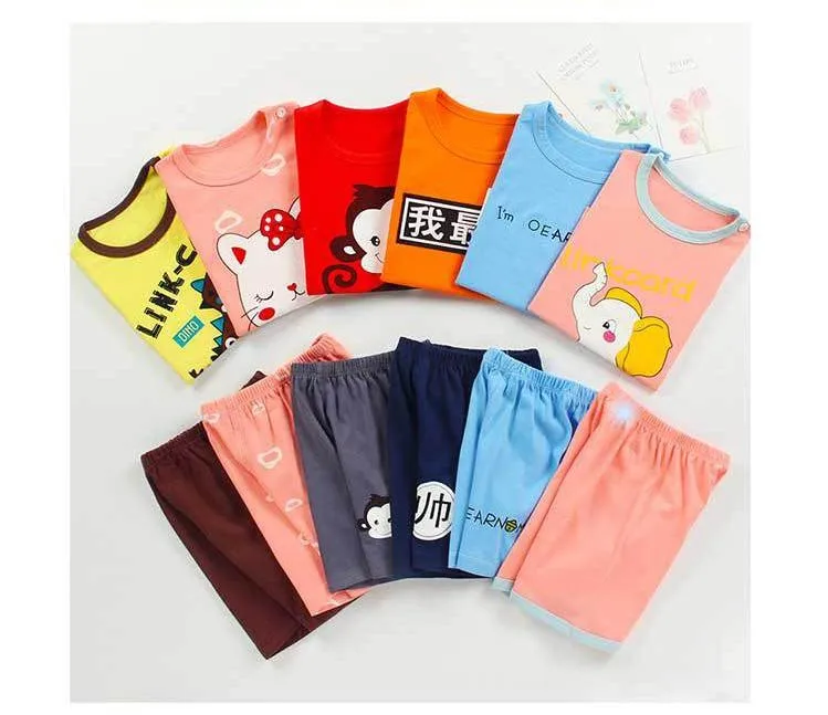 Женские костюмы с коротким рукавом, брендовая летняя одежда, Детская футболка, комплект из двух предметов, детский наряд из чистого хлопка с мультяшным рисунком