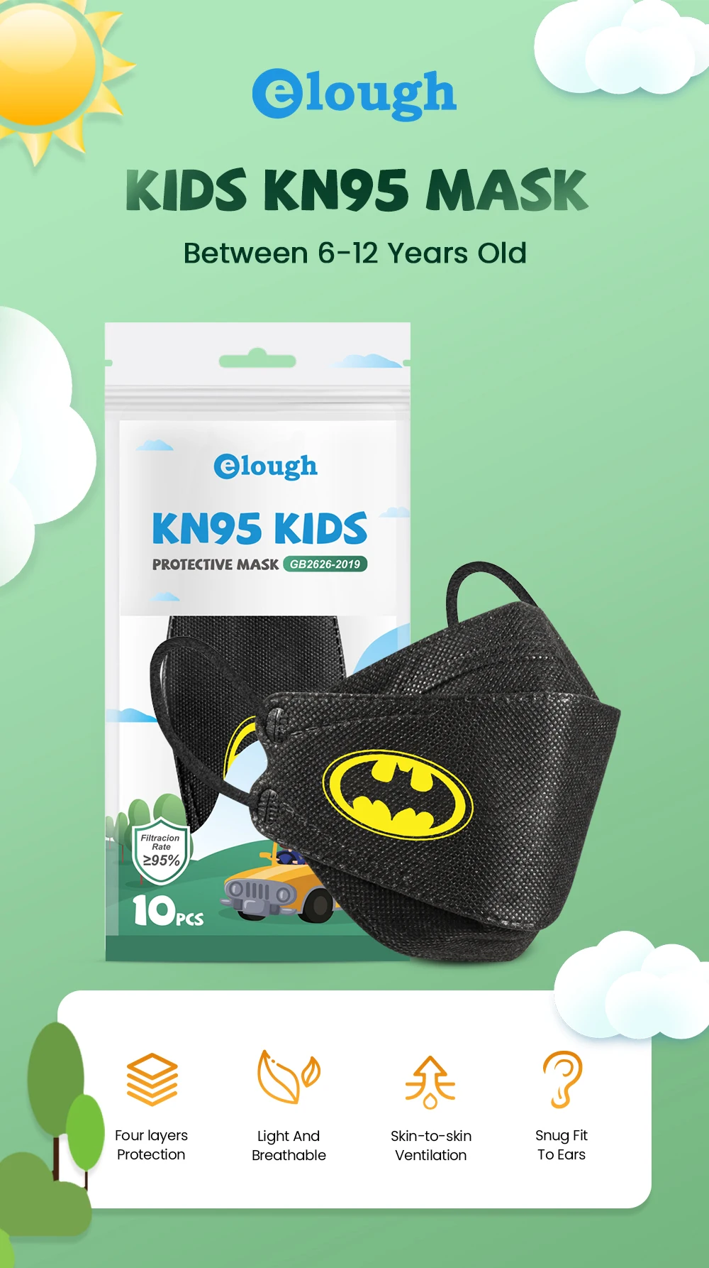 Elough детская респираторная маска fpp2 дети mascarillas neгра 4 сл...
