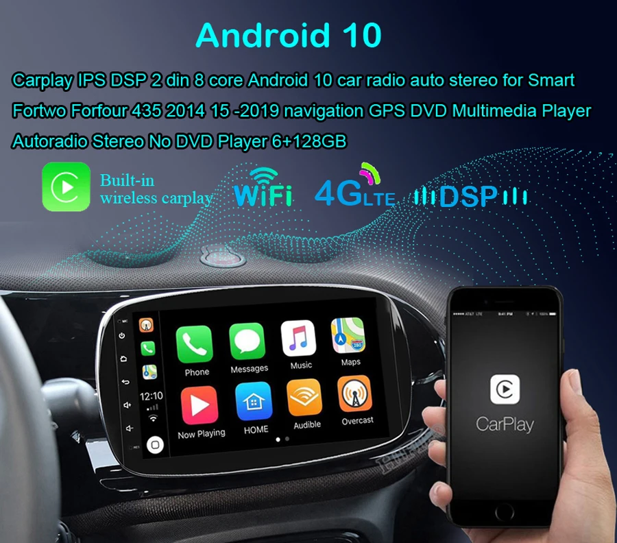 9-дюймовый автомобильный радиоприемник Android 10, автомобильное стерео для Smart Fortwo Forfour 2014, 2015, 2016, 2017, 2019, навигация GPS, DVD, мультимедийный плеер