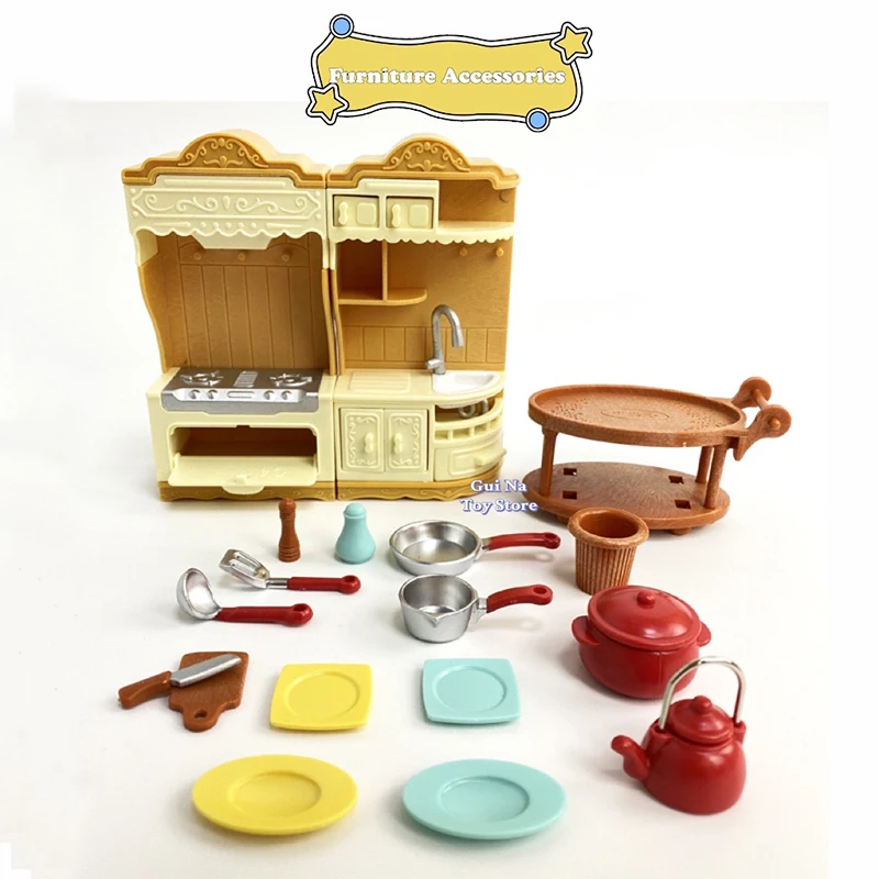 Коллекция 112 года, мебель для кукольного домика Forest Family, игрушки для кухни, ванной, спальни, корзины для десертов, Детские аксессуары
