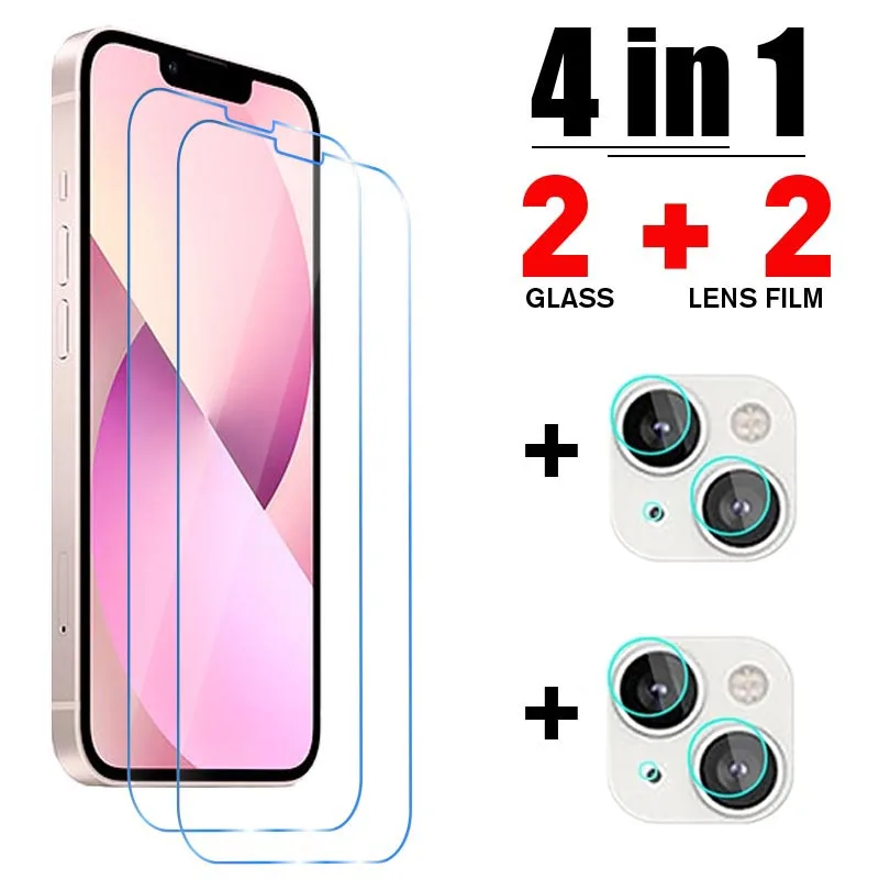 4 в 1 закаленное стекло для iPhone 13 12 11 Pro Max Защита экрана д...