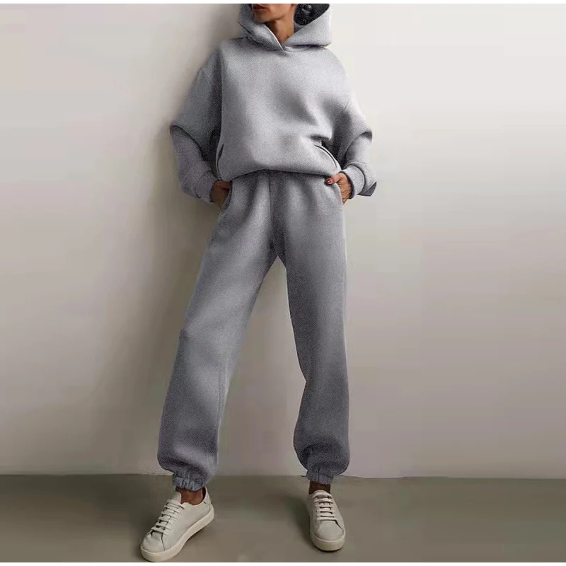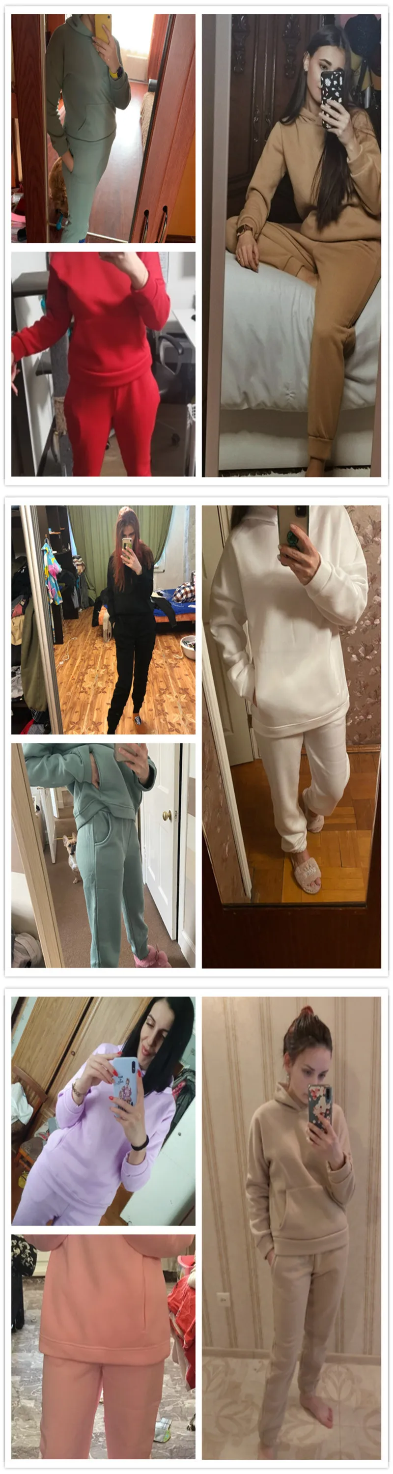 Новый спортивный костюм для женщин, элегантные однотонные костюмы, флисовые теплые толстовки, комплект из 2 предметов, Осень-зима, Модные свитшоты оверсайз, спортивный костюм
