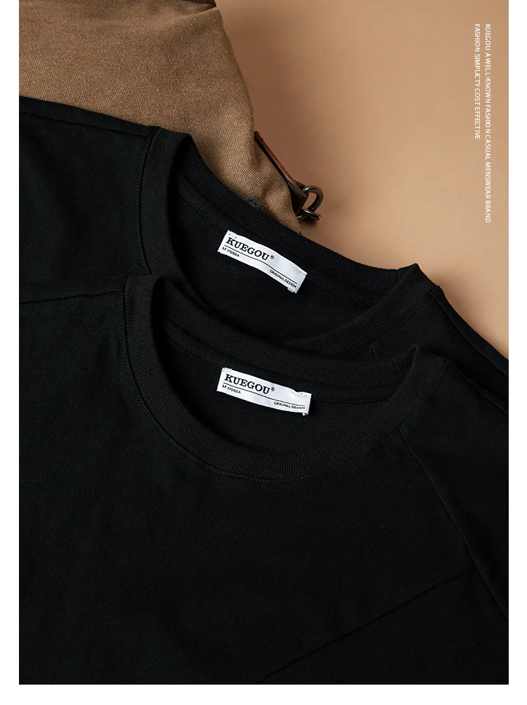 Мужская свободная футболка KUEGOU, черная футболка с коротким рукав...