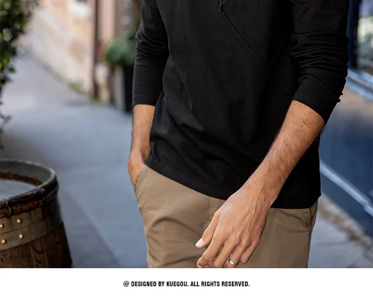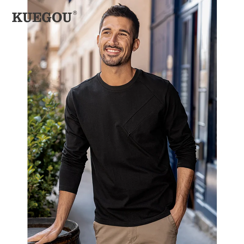 Футболка мужская с длинным рукавом KUEGOU, базовая тенниска из 100%...