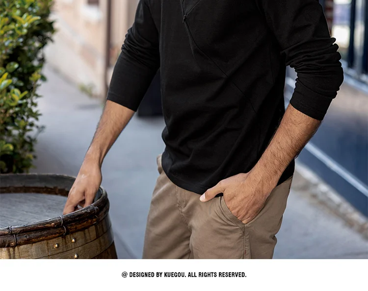 Мужской облегающий пуловер KUEGOU, черный однотонный Повседневный т...