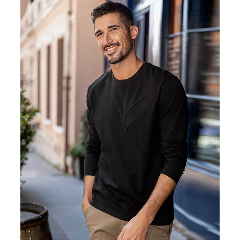 Мужская футболка с длинным рукавом KUEGOU, черная хлопковая футболк...