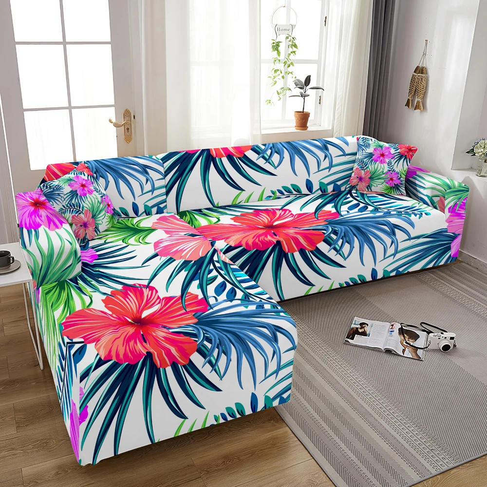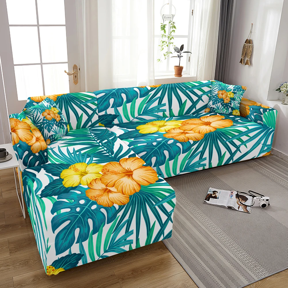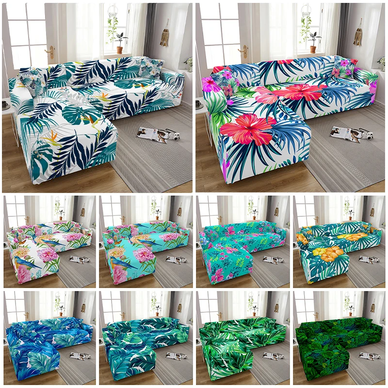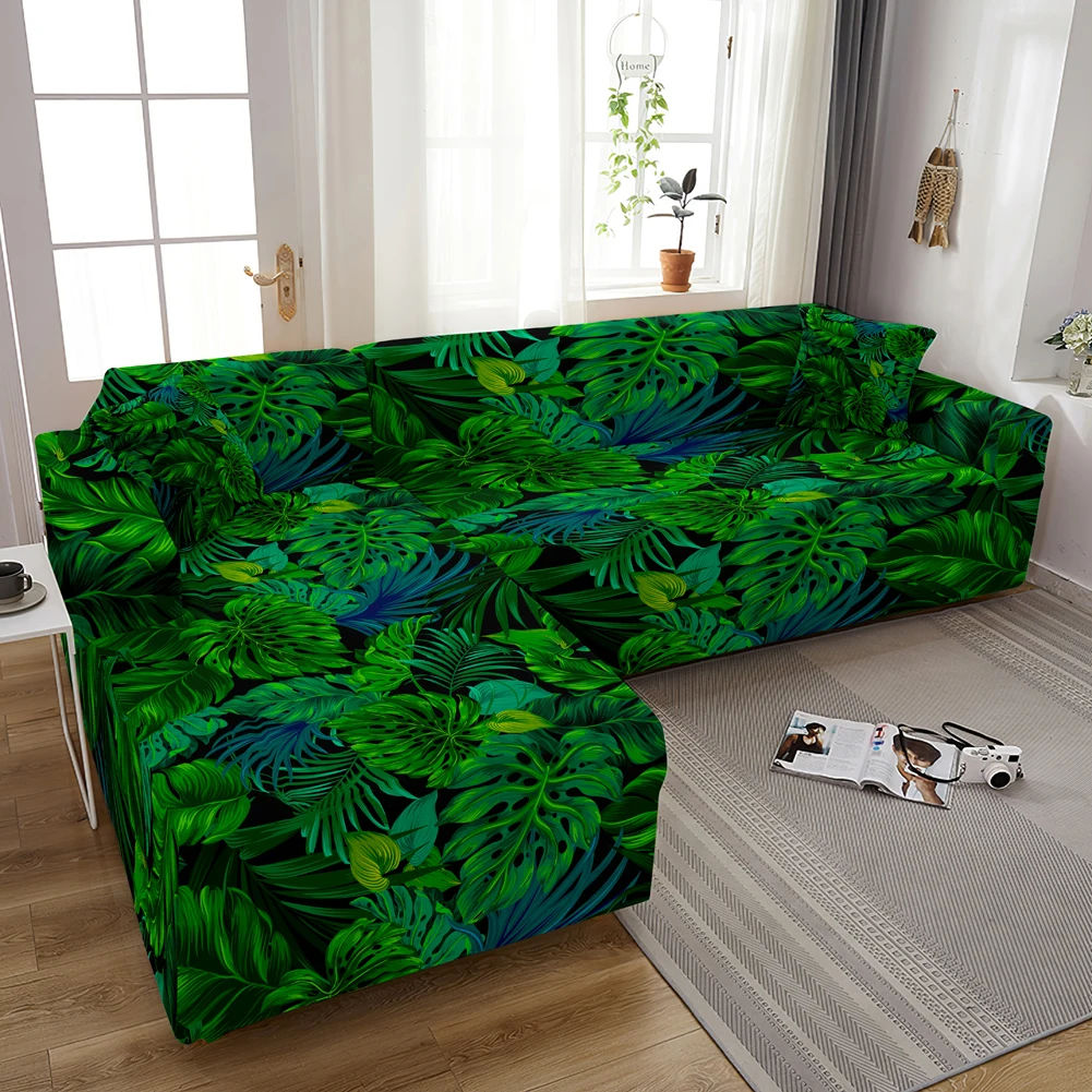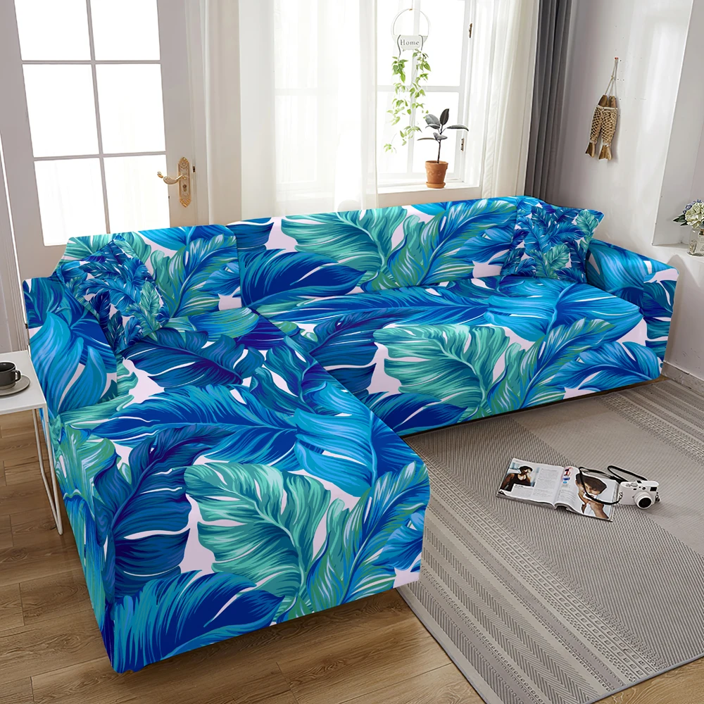 Чехол для дивана эластичный, с принтом листьев, 1234-местный