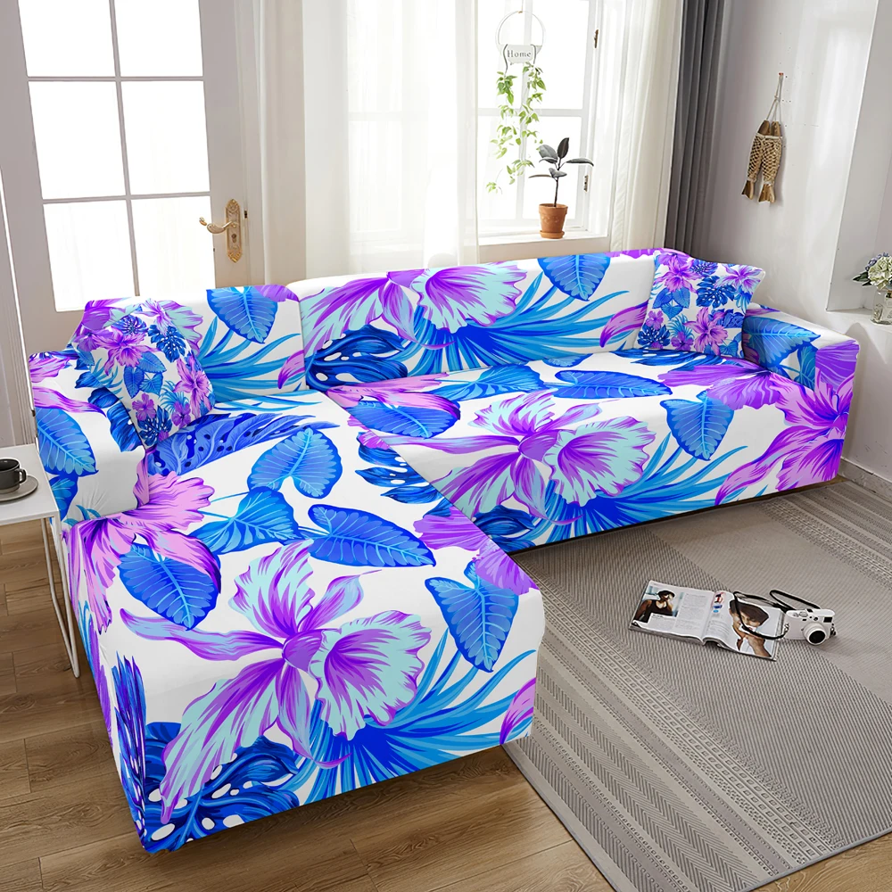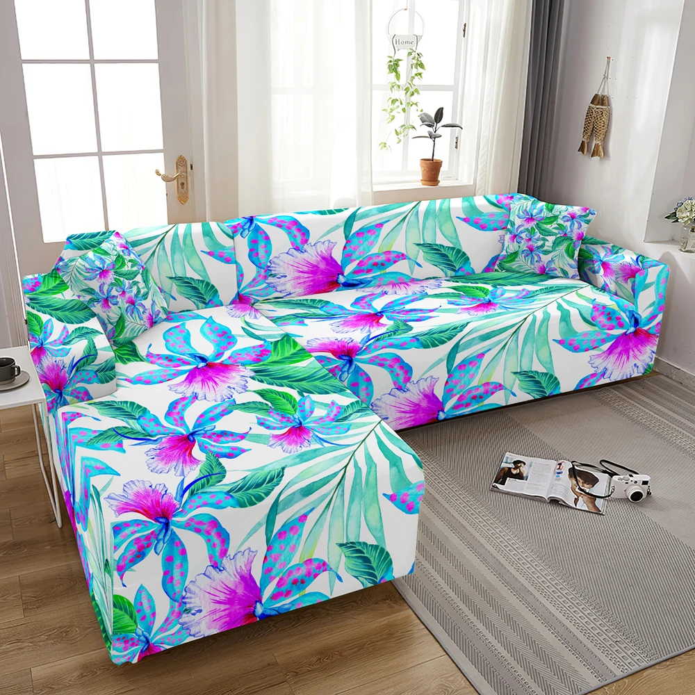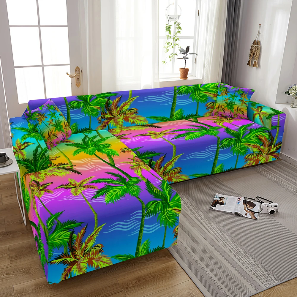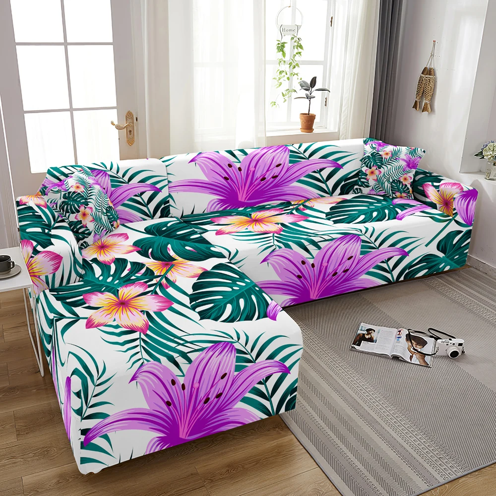 Чехол для дивана эластичный, с принтом листьев, 1234-местный