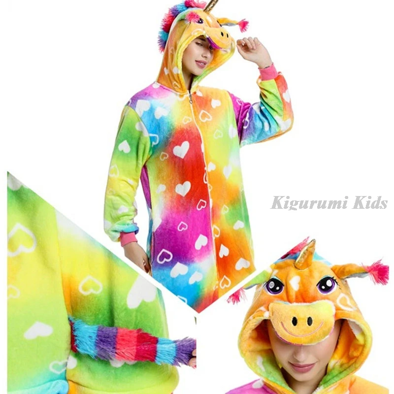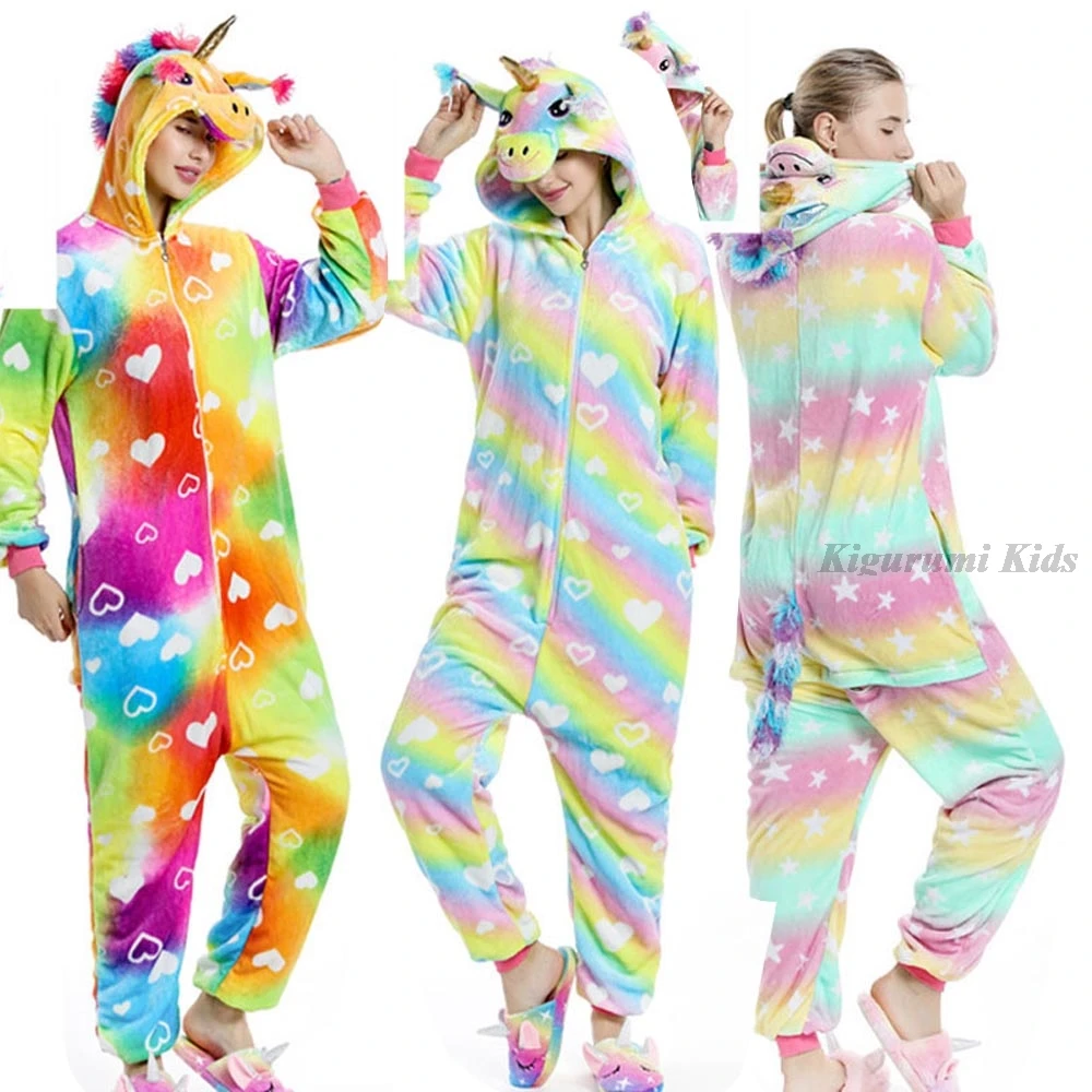 Пижама-кигуруми женская зимняя, милая пижама в виде единорога для взрослых и детей, комбинезон с животными, костюм на Хэллоуин, Ночная одежда для девочек
