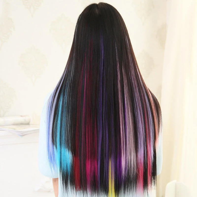 Блестящие блестящие разноцветные шелковые удлинители волос в стиле ...