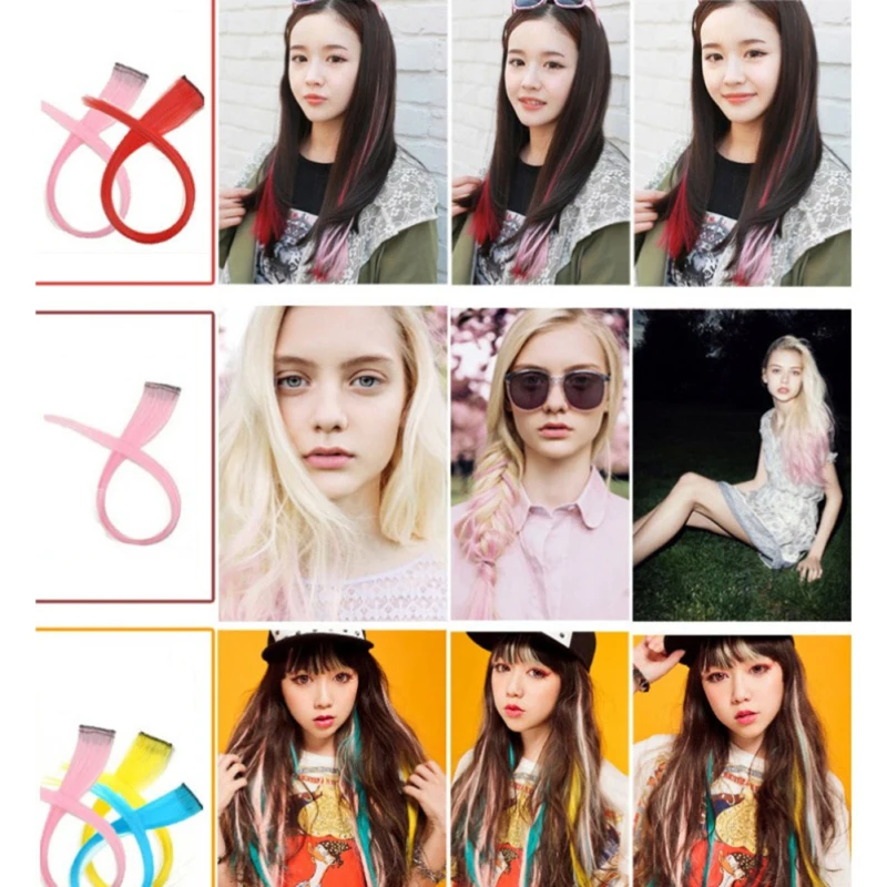 1 упаковка, блестящие накладные пряди из искусственных волос, 8 цветов