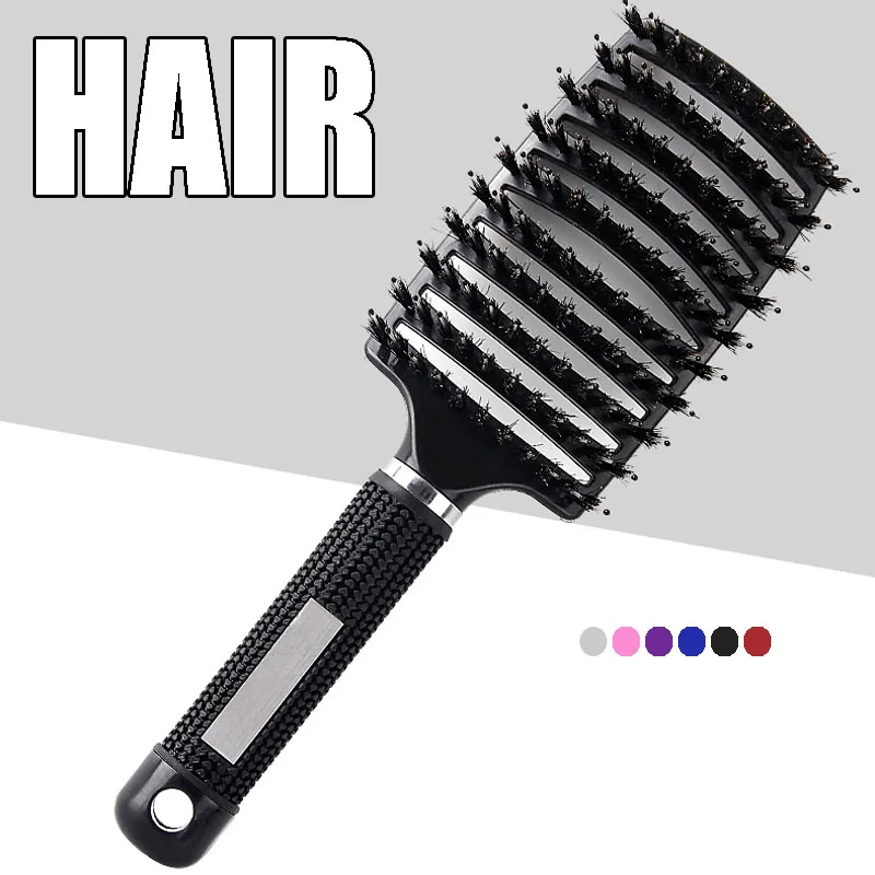 Изогнутая щетка для волос из шерсти кабана, профессиональная расческа для расчесывания волос, массажная расческа для салона, инструменты для укладки волос