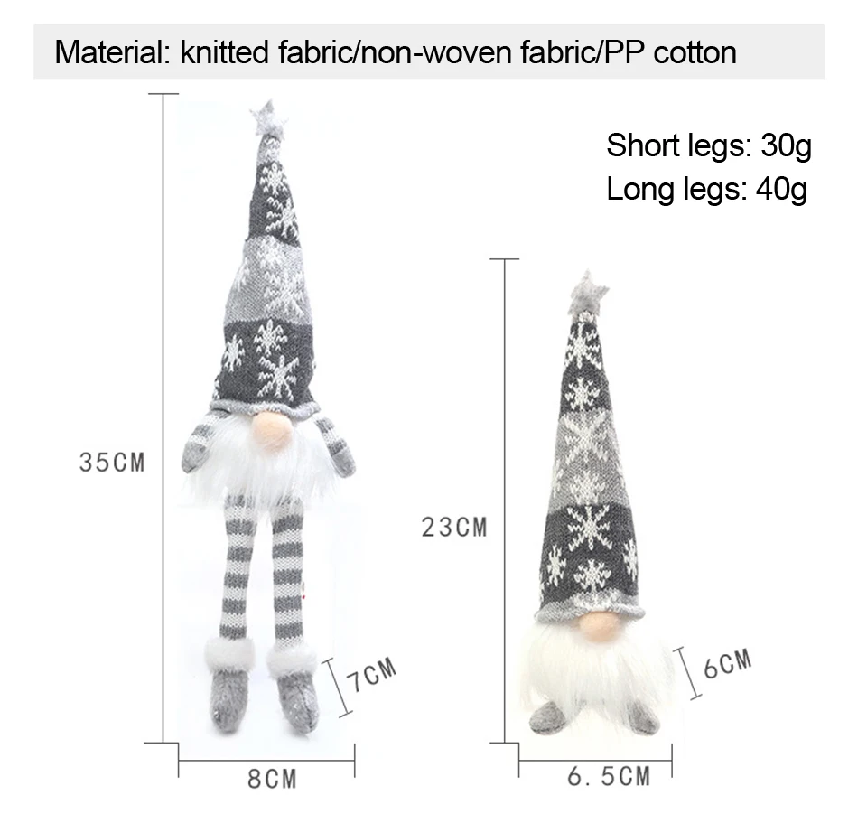 Название: светящаяся Рождественская безликая кукла ГномРазмеры: ножки: 35*8*7 см Япония и Южная Корея ноги: 23*6,5*6 смВес: длинные ноги: 40 г, короткие ноги: 30 гМатериал: трикотажная ткань, Нетканая ткань, полипропиленовый хлопокЦвет: красный, зеленый и серыйИсточник питания: 3 шт. кнопочный аккумулятор(Аккумулятор не входит в комплект)