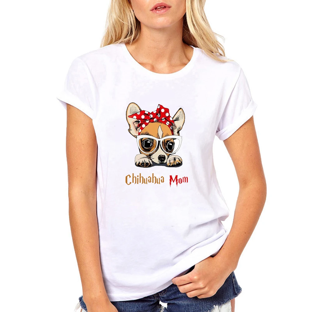 Женская футболка с коротким рукавом, круглым вырезом и принтом чихуахуа