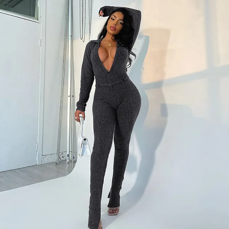 Simenual вязаный, на пуговицах ребристые женские Комбинезон Плотно ...