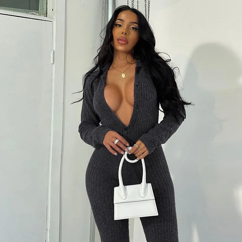 Комбинезон женский трикотажный, с длинным рукавом, на пуговицах