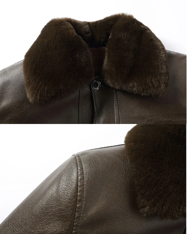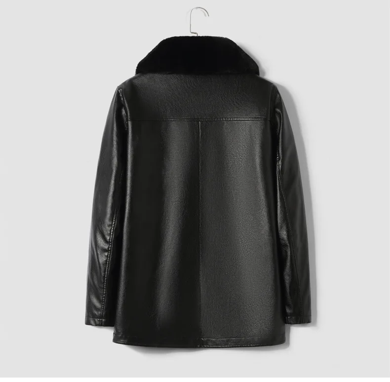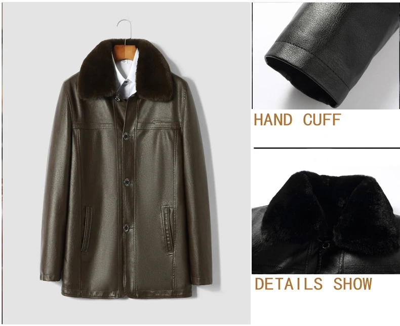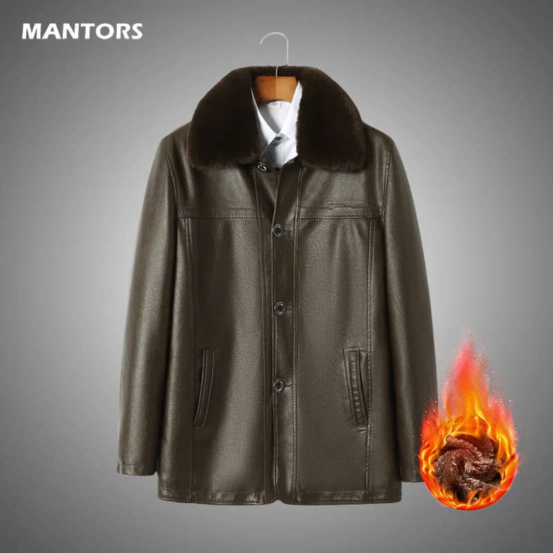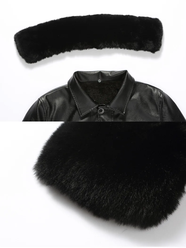 Мужская повседневная куртка из ПУ кожи, с меховым воротником и флисовой подкладкой, размеры до 6XL